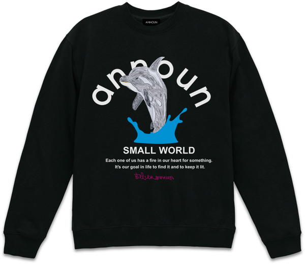 やわらかさがありながら、薄すぎないしっかりとした厚みのスエットシャツ。フロントにいるかモチーフをプリントしたアイテムになります。