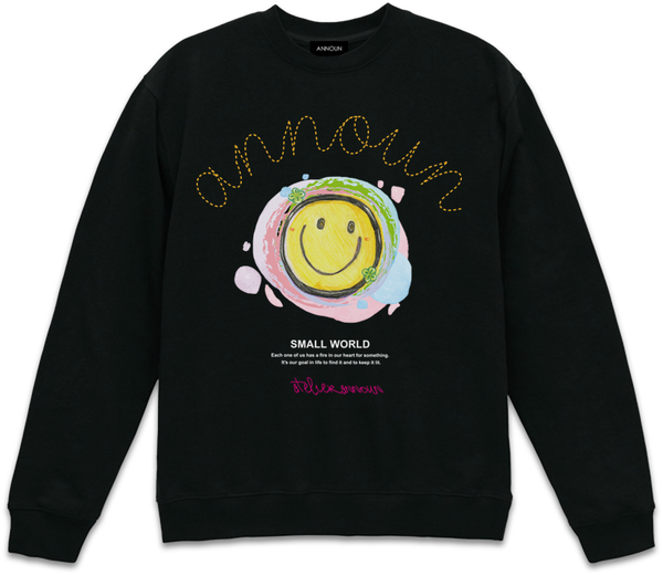 やわらかさがありながら、薄すぎないしっかりとした厚みのスエットシャツ。フロントにスマイルモチーフをプリントしたアイテムになります。