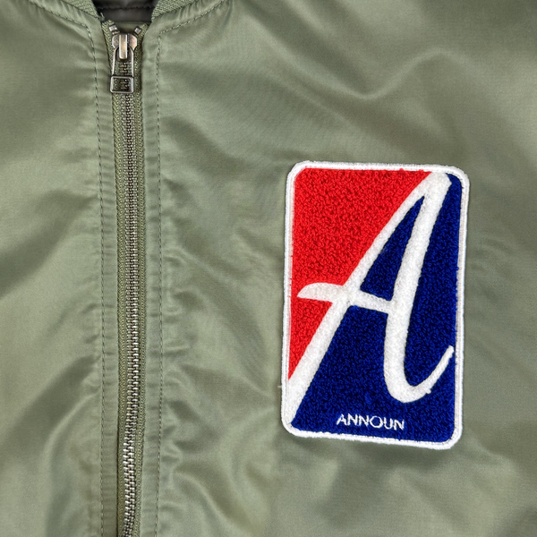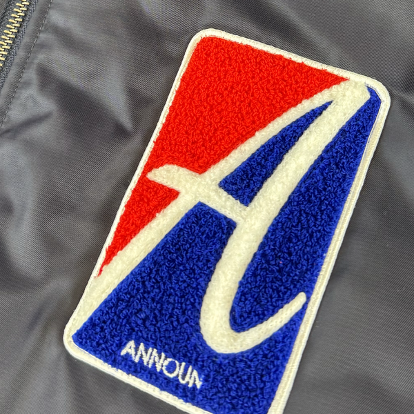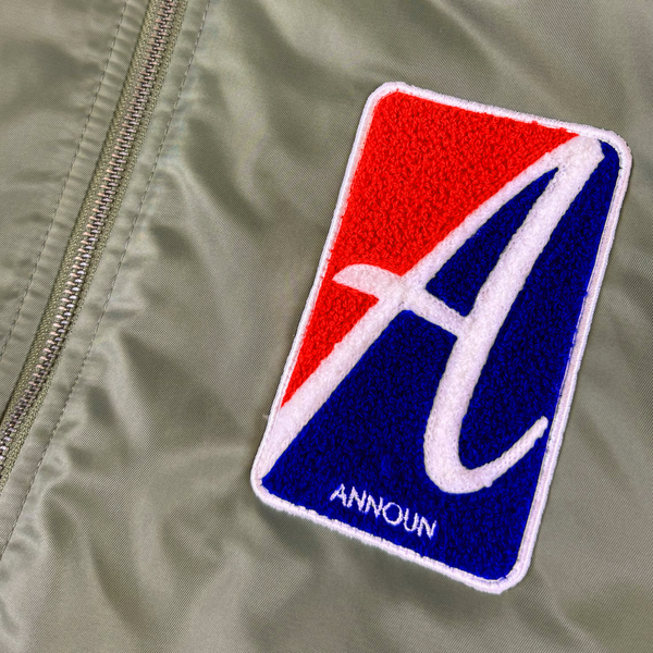 ディテールにこだわった本格仕様のMA-1。フロントにワッペンを施したアイテムになります。