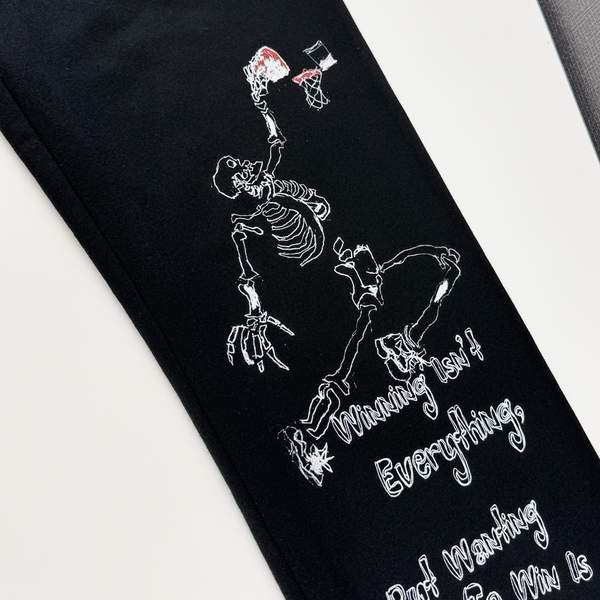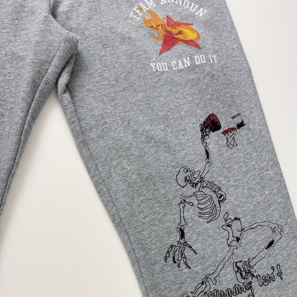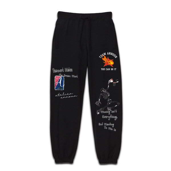 裾をシャーリングしたシンプルかつ快適な着心地のスエットパンツ。フロントにロゴとバスケットボールモチーフをプリントしたアイテムとなります。
