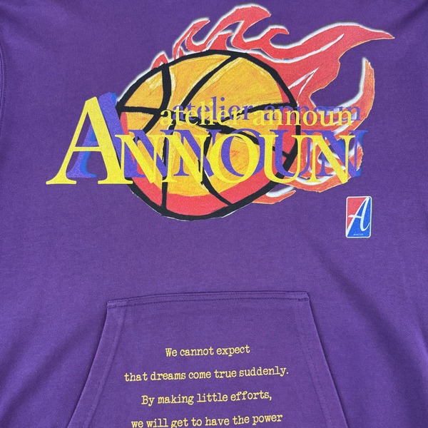 定番シルエットデザインで、ボリューム感のあるフードのプルオーバーパーカー。フロントにバスケットボールモチーフをプリントしたアイテムになります。Color ゴールド / パープルSizeS (着丈63cm 身幅52cm 肩幅47cm 袖丈56cm)M (着丈67cm 身幅55cm 肩幅50cm 袖丈60cm)L (着丈71cm 身幅58cm 肩幅53cm 袖丈61cm)XL (着丈76cm 身幅63cm 肩幅56cm 袖丈62cm)XXL (着丈81cm 身幅68cm 肩幅58cm 袖丈63cm)Quality 綿100% 10.0oz 裏パイル★ プリントの製法品質を上げる為、プリント部分に下処理剤を使用しております。下処理剤の跡が(濡れたような跡)が残る場合がございます。手元に届きました製品は、一度洗濯頂く事で、下処理剤のあとがなくなりますので、着用前に洗濯されることをお勧めいたします。※下処理剤は人体・製品の品質に影響はありませんのでご安心ください。※インクジェットプリントのインクは熱に弱い特性がございますので、乾燥機のご利用は避けてください。★商品ご発送に5日~7日お時間をいただいております。あらかじめご了承ください。★ご使用のモニタ・環境によって実際の色と多少異なる場合がございます。★商品に関するお問い合わせはメールでこちらまでお願い致します。【shop@announ.jp】