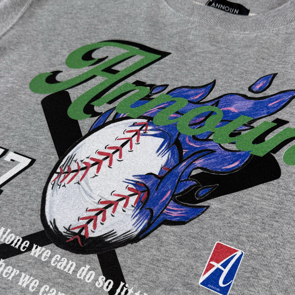 ややざっくりなシルエットで通常よりも太い糸を編み込み重厚感ある生地のスエット。フロントにベースボールモチーフをプリントしたアイテムになります。Color ネイビー / グレーSizeS (着丈66cm 身幅52cm 肩幅47cm 袖丈60cm)M (着丈69cm 身幅55cm 肩幅50cm 袖丈61cm)L (着丈72cm 身幅58cm 肩幅53cm 袖丈62cm)XL (着丈75cm 身幅61cm 肩幅56cm 袖丈63cm)XXL (着丈78cm 身幅64cm 肩幅59cm 袖丈64cm)Quality 綿100% 12.7oz 裏パイル★ プリントの製法品質を上げる為、プリント部分に下処理剤を使用しております。下処理剤の跡が(濡れたような跡)が残る場合がございます。手元に届きました製品は、一度洗濯頂く事で、下処理剤のあとがなくなりますので、着用前に洗濯されることをお勧めいたします。※下処理剤は人体・製品の品質に影響はありませんのでご安心ください。※インクジェットプリントのインクは熱に弱い特性がございますので、乾燥機のご利用は避けてください。★商品ご発送に5日~7日お時間をいただいております。あらかじめご了承ください。★ご使用のモニタ・環境によって実際の色と多少異なる場合がございます。★商品に関するお問い合わせはメールでこちらまでお願い致します。【shop@announ.jp】