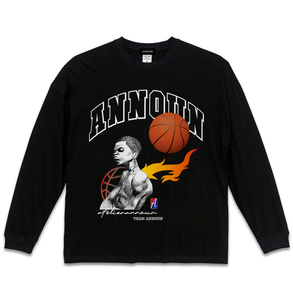 ほどよくドロップさせた肩回りと袖丈の長さでルーズ感をだし着丈や身幅もゆったりながらまとまりある、ビッグシルエットのロングスリーブTシャツ。フロントにバスケットモチーフとパーソンモチーフをプリントしたアイテムになります。