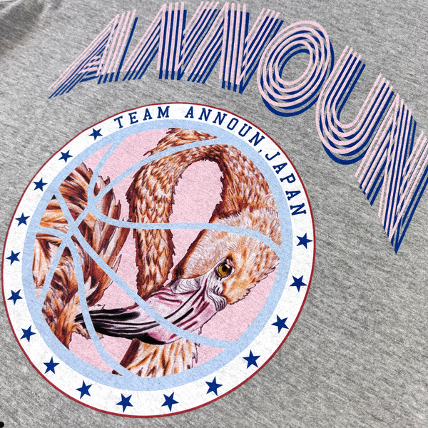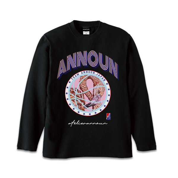 着心地にこだわったオールシーズン楽しめるロングスリーブTシャツ。フロントにバスケットモチーフとフラミンゴモチーフをプリントしたアイテムになります。