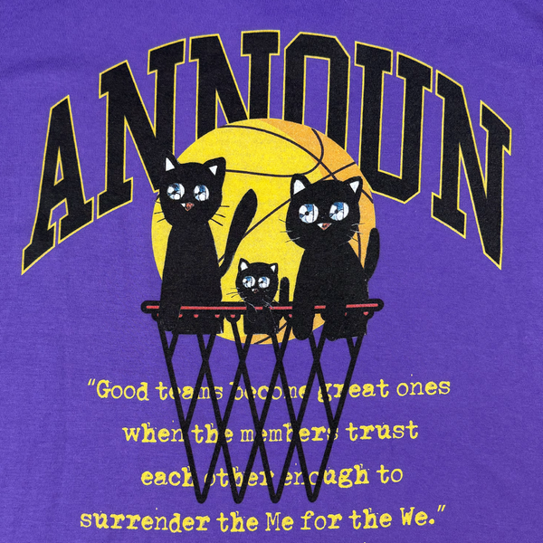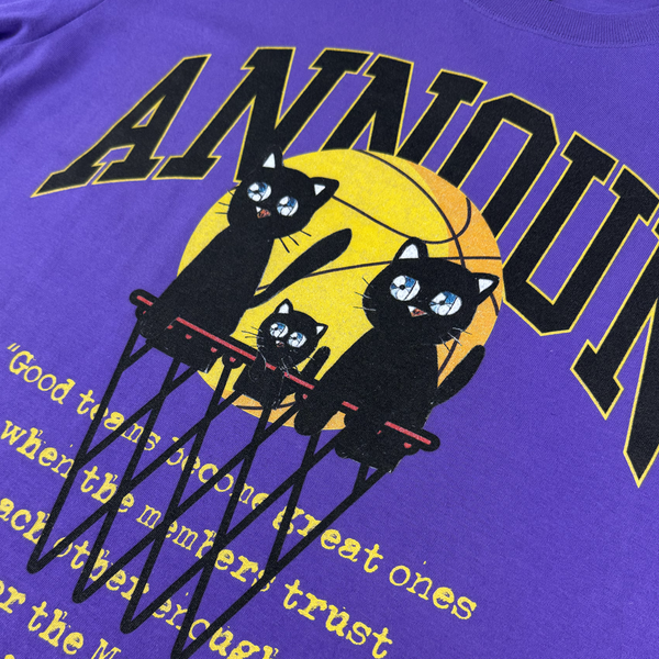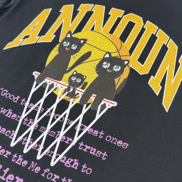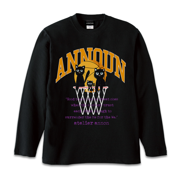 着心地にこだわったオールシーズン楽しめるロングスリーブTシャツ。フロントにバスケットモチーフとキャットモチーフをプリントしたアイテムになります。