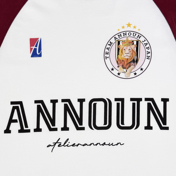 ゆとりのあるサイジング、長めの裄丈のラグランロングスリーブTシャツ。フロントにライオンモチーフをプリントしたアイテムになります。