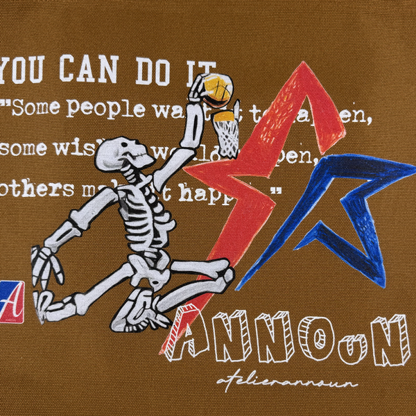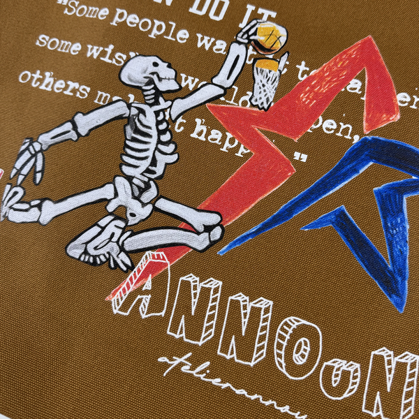 しっかりとした頑丈な生地が特徴のトートバッグ。フロントにバスケットボールモチーフをプリントしたアイテムになります。