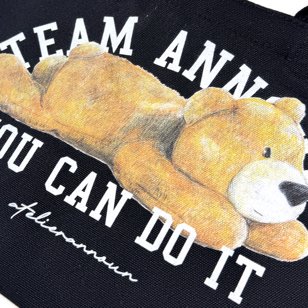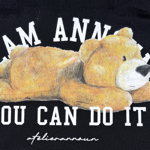 丸みのあるパイプの持ち手がポイントのランチバッグ。フロントにベアモチーフをプリントしたアイテムになります。
